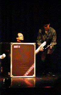 Ce numéro de scène inclassable, dynamique et futuriste est un logarythme de danse programmé sur la musique de "living in a box" avec des effets comme l'apparîtion de quatre jambes. Tout cela risque dangereusement de surchauffer... Dernièrement il est passé sur "Paris premiere" dans l'émission du "cabaret Sauvage" |